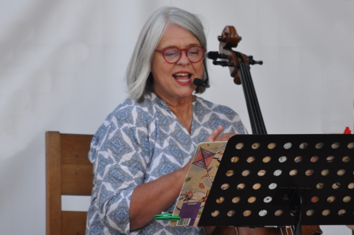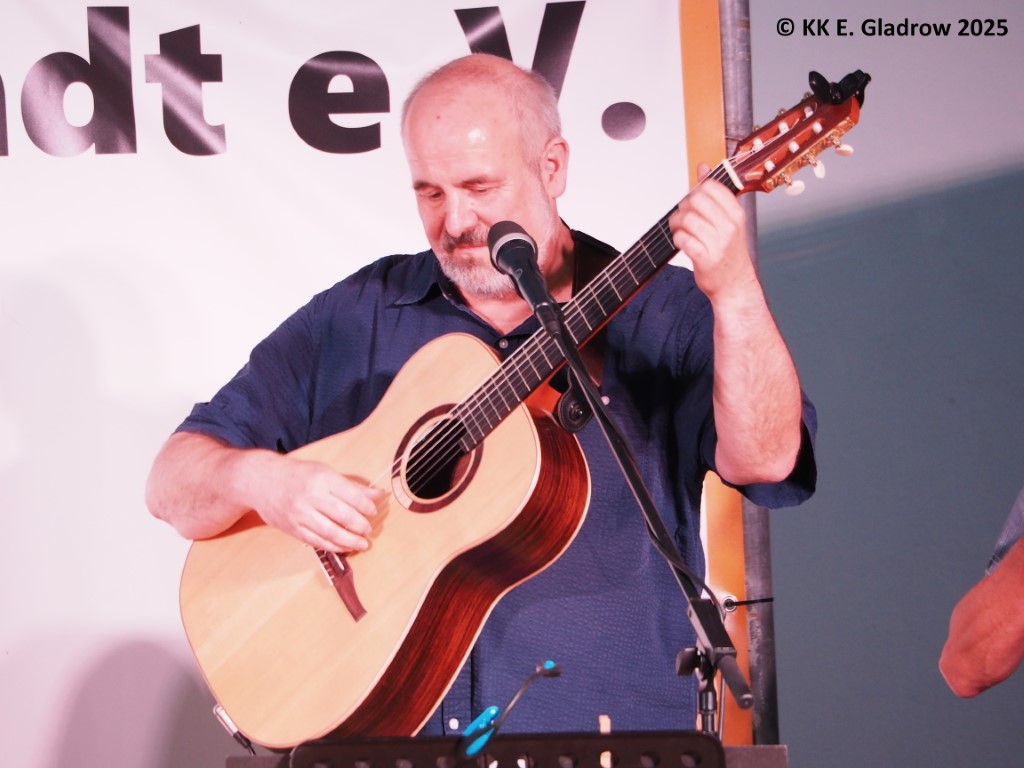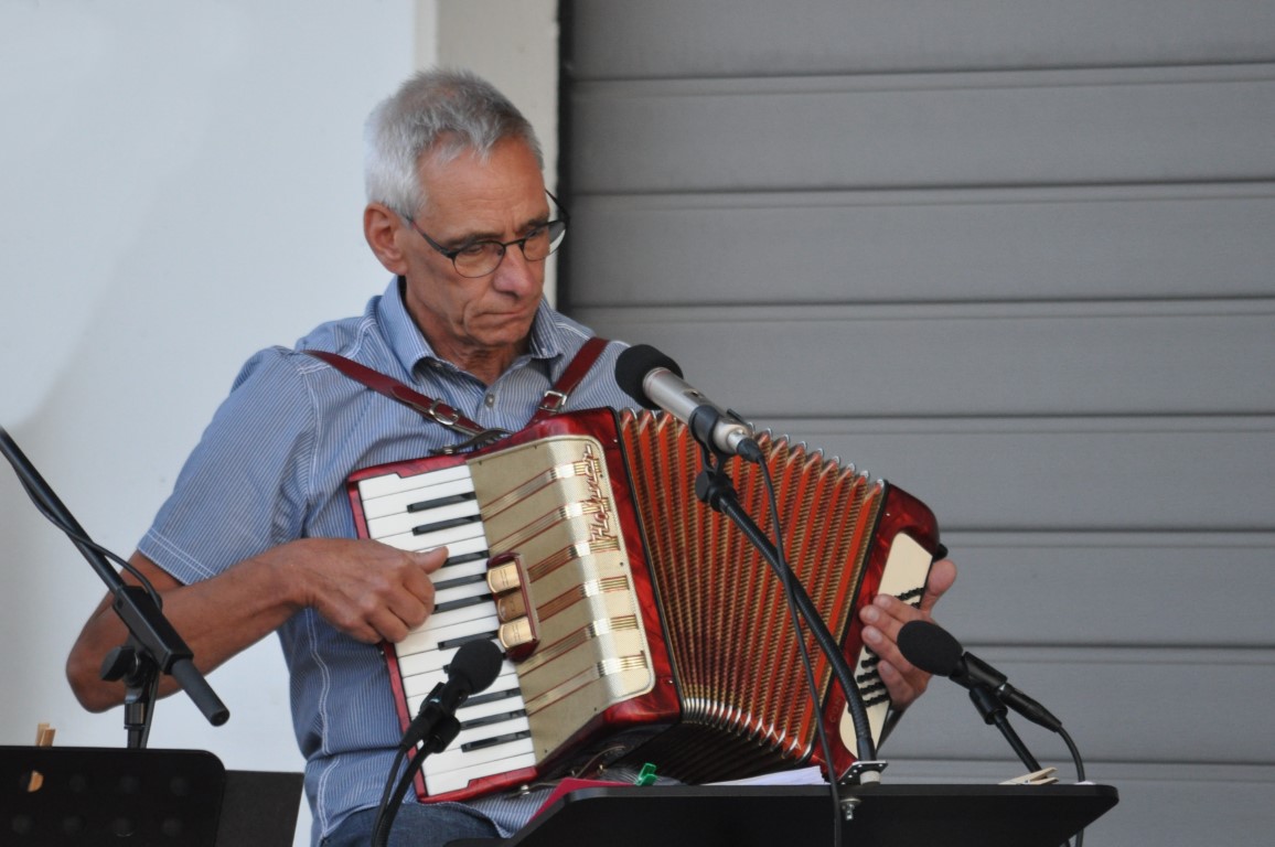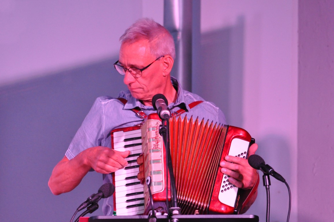 Hansi Lawall zeigte sein Können am Akkordeon und an der Bassgitarre, Elisabeth Verhoeven beeindruckte mit ihrem Cello und besonders mit ihren Rezitationen, Christian Hoch brachte mit seinen Erfahrungen aus der Folkband „Eselskreisch“ eine eigene Note ein, und Peter Holdenried riss mit seiner ausdrucksstarken Stimme das Publikum mit.