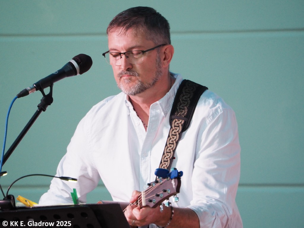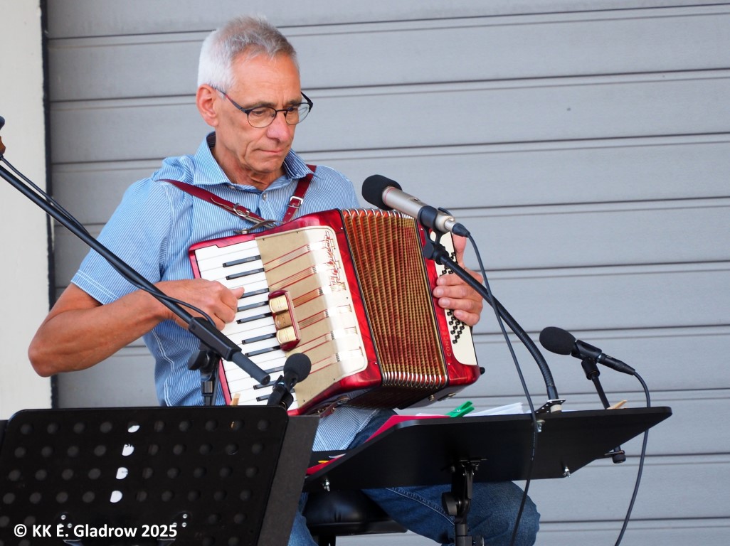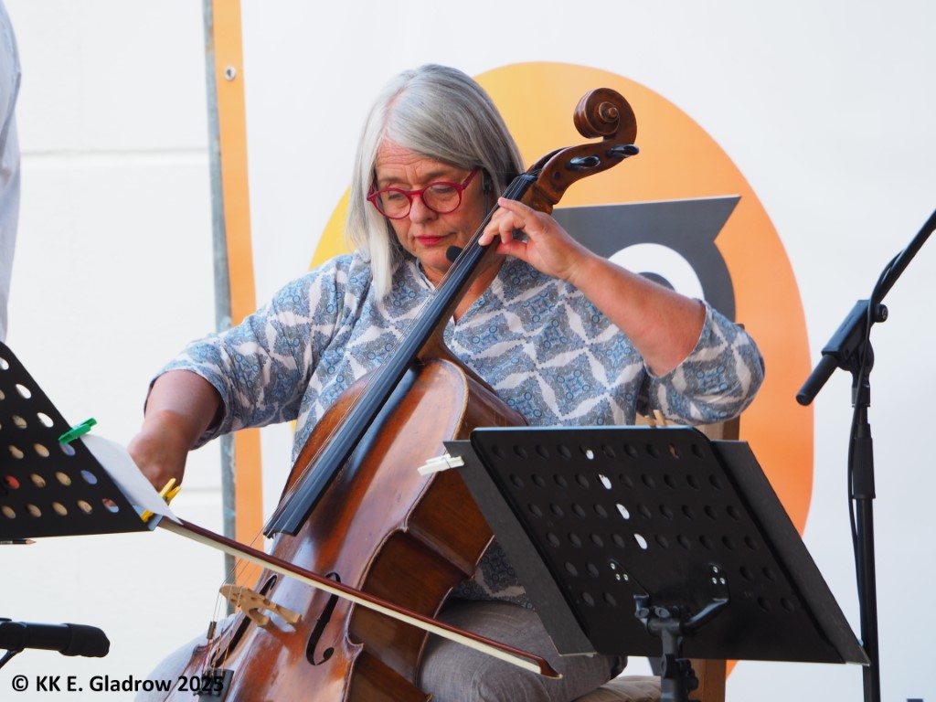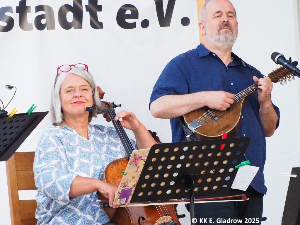 Hansi Lawall zeigte sein Können am Akkordeon und an der Bassgitarre, Elisabeth Verhoeven beeindruckte mit ihrem Cello und besonders mit ihren Rezitationen, Christian Hoch brachte mit seinen Erfahrungen aus der Folkband „Eselskreisch“ eine eigene Note ein, und Peter Holdenried riss mit seiner ausdrucksstarken Stimme das Publikum mit.