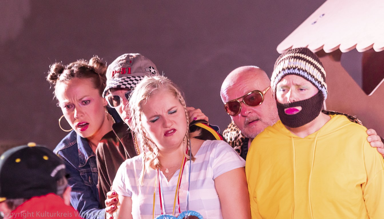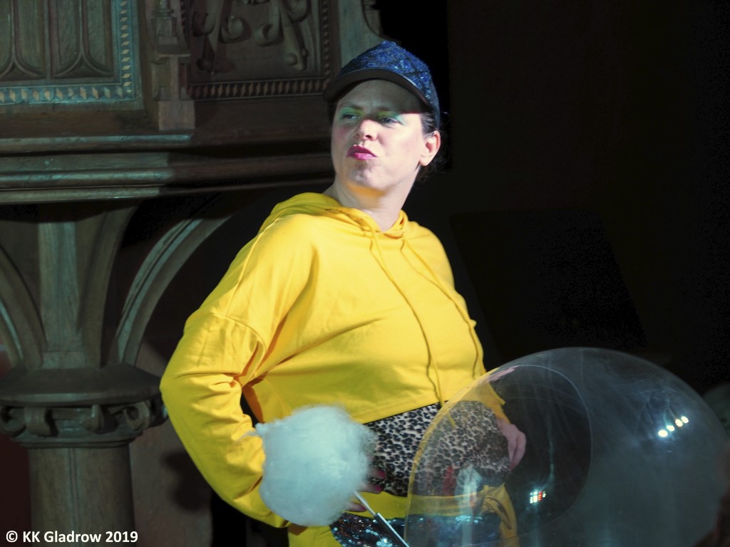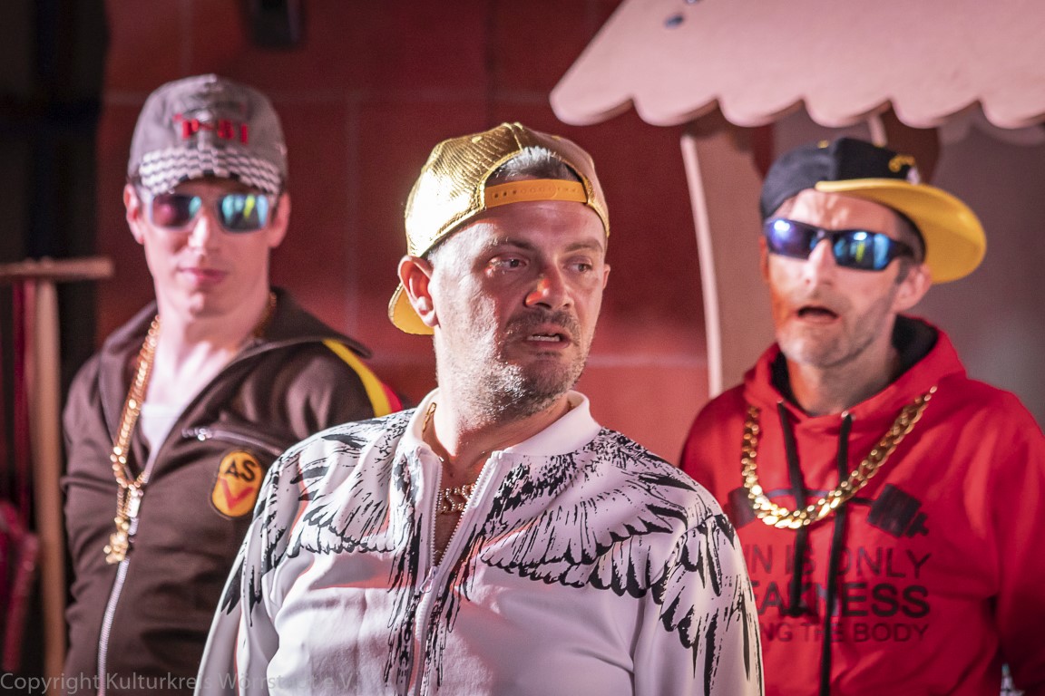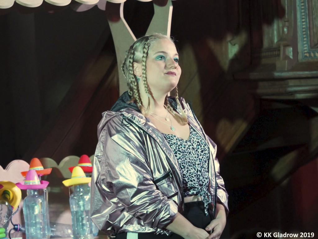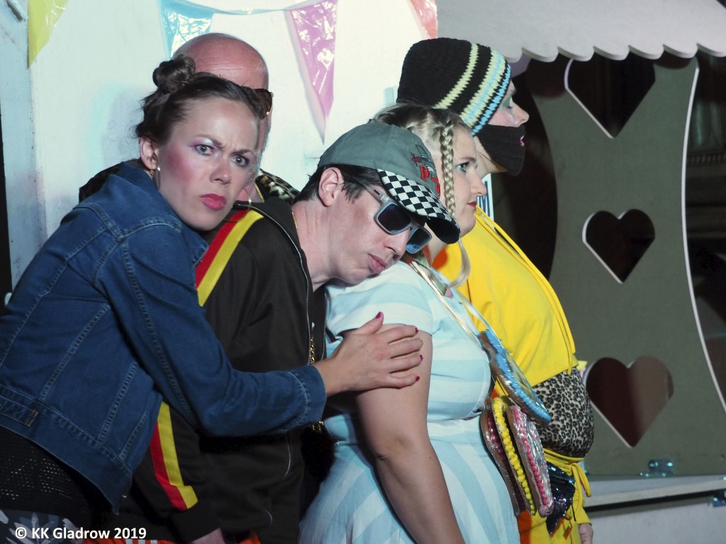 „Es ist mit Abstand das unpassendste Stück, um es in einer Kirche aufzuführen“, meint Andreas Koch, als er die Zuschauer begrüßt. „Es ist unmoralisch und frauenfeindlich.“ Und mit einem Grinsen fügt er hinzu: „Besser, es würde in der katholischen Kirche gespielt.“ Dafür erntet er wissende Lacher. Koch hat die Geschichte der beziehungsunwilligen Katharina (Franziska Langer) ins Schausteller-Milieu transferiert. „Wenn schon sexistisch und frauenfeindlich, dann bietet sich dieses Umfeld durchaus an“, erklärt er nach der Vorstellung. Und er ist sich bewusst, dass diese Haltung nicht grade von „political correctness“ zeugt. Er selbst hat nicht nur Shakespeare umgewandelt und Regie geführt, er spielt ebenfalls mit. Als „Daddy“ von Bianca (Isabelle Stolzenburg) und Katharina kommt er protzig goldschmuckbehängt daher und will doch nichts lieber, als seine beiden Töchter schnell unter die Haube zu bringen. Das wäre bei Bianca kein Problem, sie hat zwei Verehrer. Hortensio (Stefan Senf) und Lucentio (Jonathan Roth), obschon Rivalen, beschließen gemeinsam, der Kneifzange Katharina einen Gatten zu verschaffen.