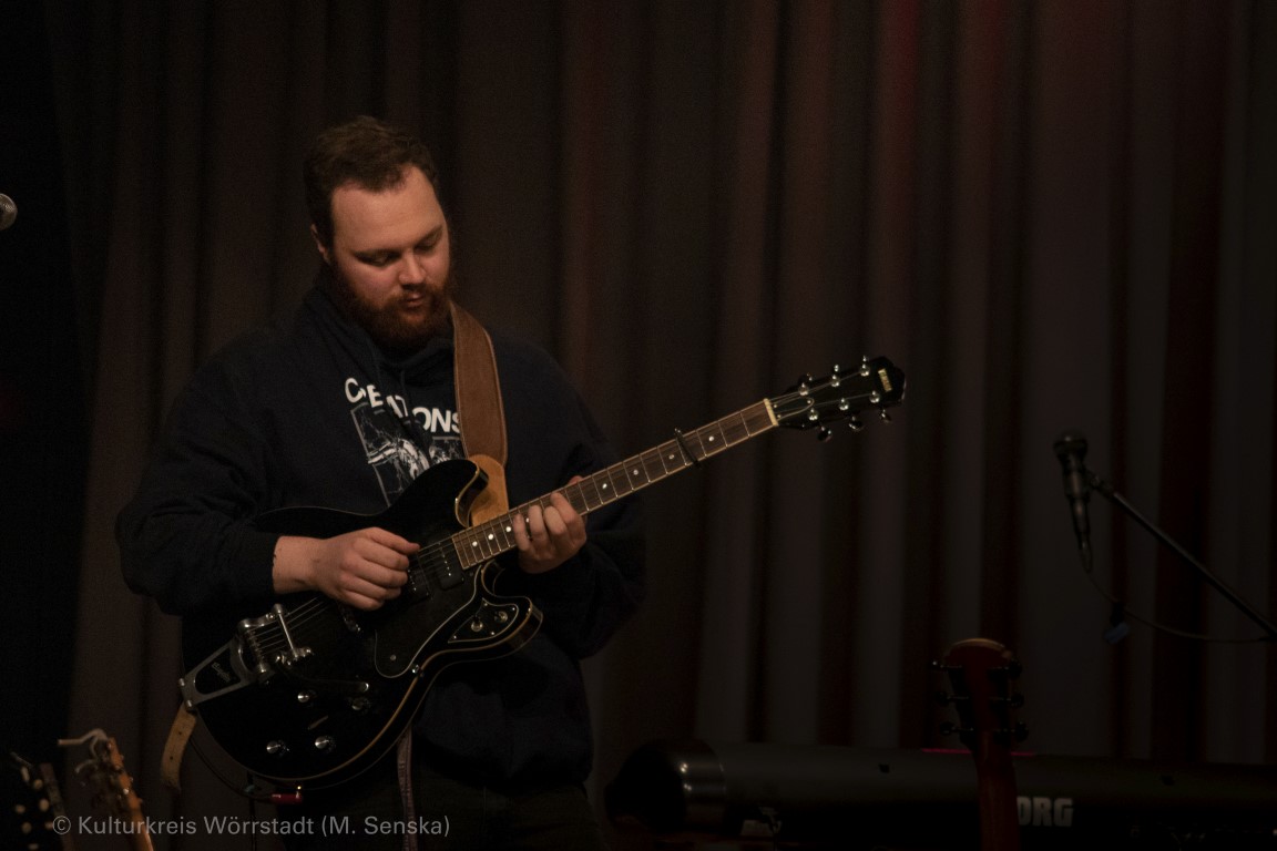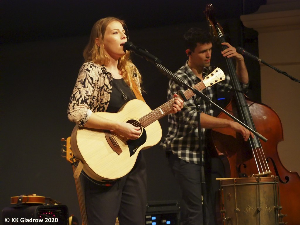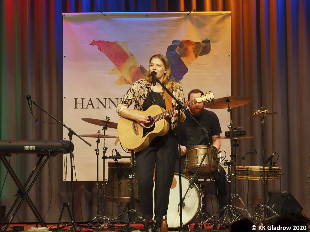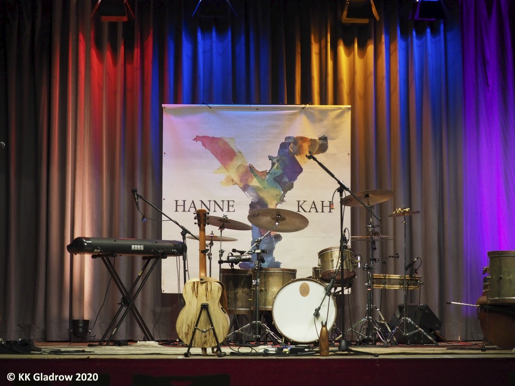 Mit „Dust in my Lungs“ aus dem Album „Y“ von 2019 und „Come on“, einem Folk-Country-Titel von 2018, sorgen sie in Wörrstadt für einen powervollen Einstieg. „Wir haben seit drei Wochen nicht auf der Bühne gestanden und wir haben richtig Bock“, sagt Hanne an. Das hört man! Wenn der Bass loswummert, vibriert das Zwerchfell. Manchmal bedauert man, dass dabei die schöne Stimme der Sängerin etwas übertönt wird. Bei den leiseren Stücken hat man eher die Chance, das ausdrucksstarke Folk-Timbre ihres Sounds zu entdecken. Kurze A-capella-Passagen mit ihrem Gitarristen Patrick Jost und Bassmann Quernheim, die beide Background singen, sorgen für Gänsehaut.