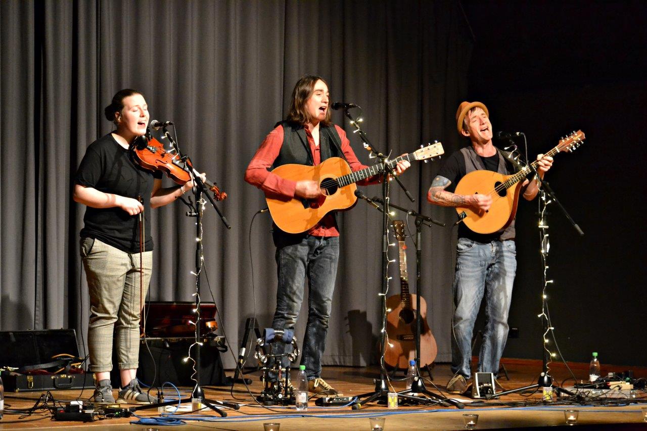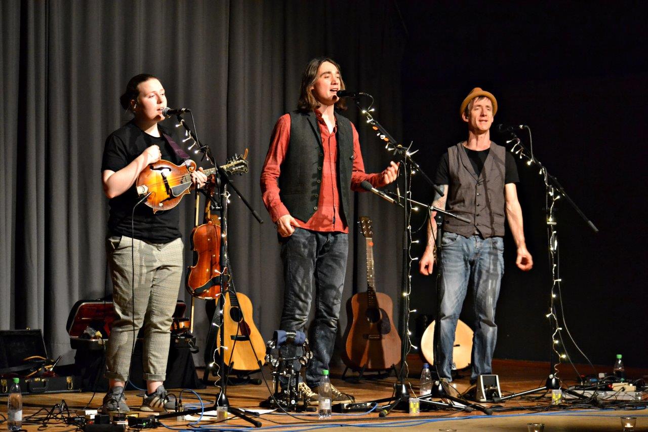 Als Solistin überzeugt Emily Donoghue mit dem von ihr komponierten „Girl“, zu dem Andrew Cadie an der Geige und Mark Bloomers Mandoline den musikalischen Hintergrund liefern. Ein ganz neuer Titel der Bezzums ist „Reincarnation“, traditionelle und neue Weisen erklingen im Wechsel, die Zuhörer gehen begeistert mit und lassen das Trio nicht von der Bühne, bis Andrew mit einem „ganz alten, deutschen Winterlied“ den Abschluss des Abends einsingt. „Ach bittrer Winter“ – auch bei uns gibt es eine Tradition schöner Lieder, man muss sie nur entdecken. „Blessing“ ist die endgültig letzte Zugabe und begeisterter Beifall verabschiedet die Broom Bezzums nach einem stimmungsvoll-heiteren Abend.