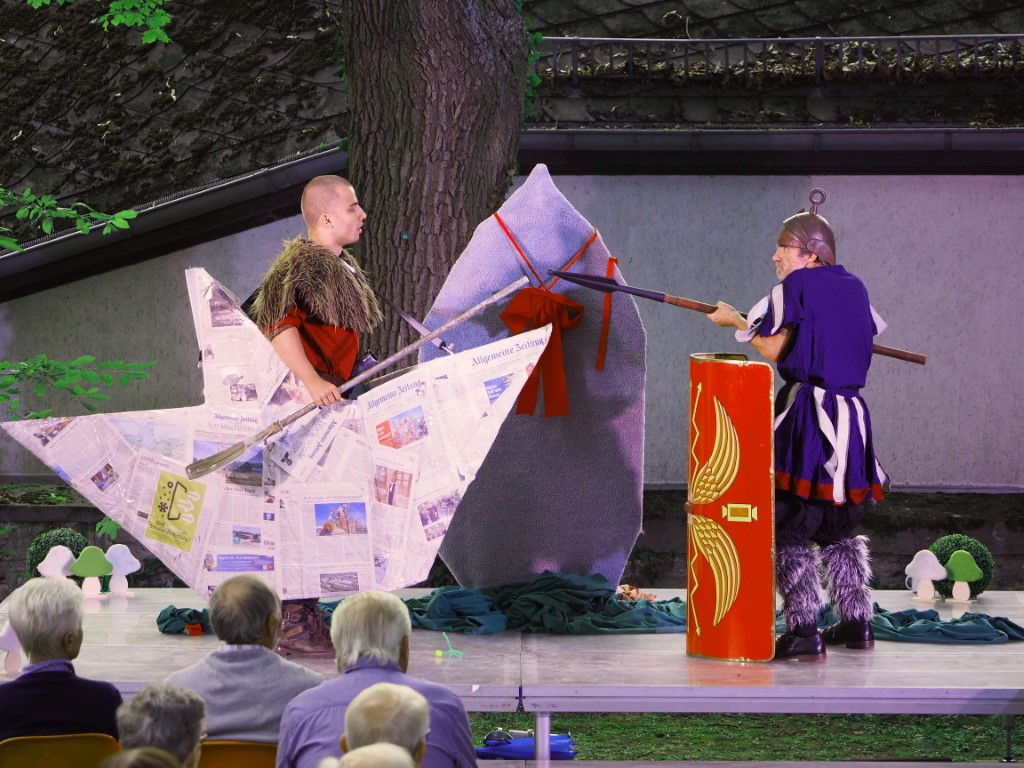 Am Ende steht ein furioses Finale in dem auch Jupiter eingreift. Dieses Finale ist so voller Action, dass es in den vergangenen Aufführungen machen Schauspieler Blessuren einbrachte und umbesetzt werden musste. Aus dem Grund war dann auch die Aufführung in Wörrstadt wieder eine Premiere. Drunter machte es das Zettel’s Theater nicht.