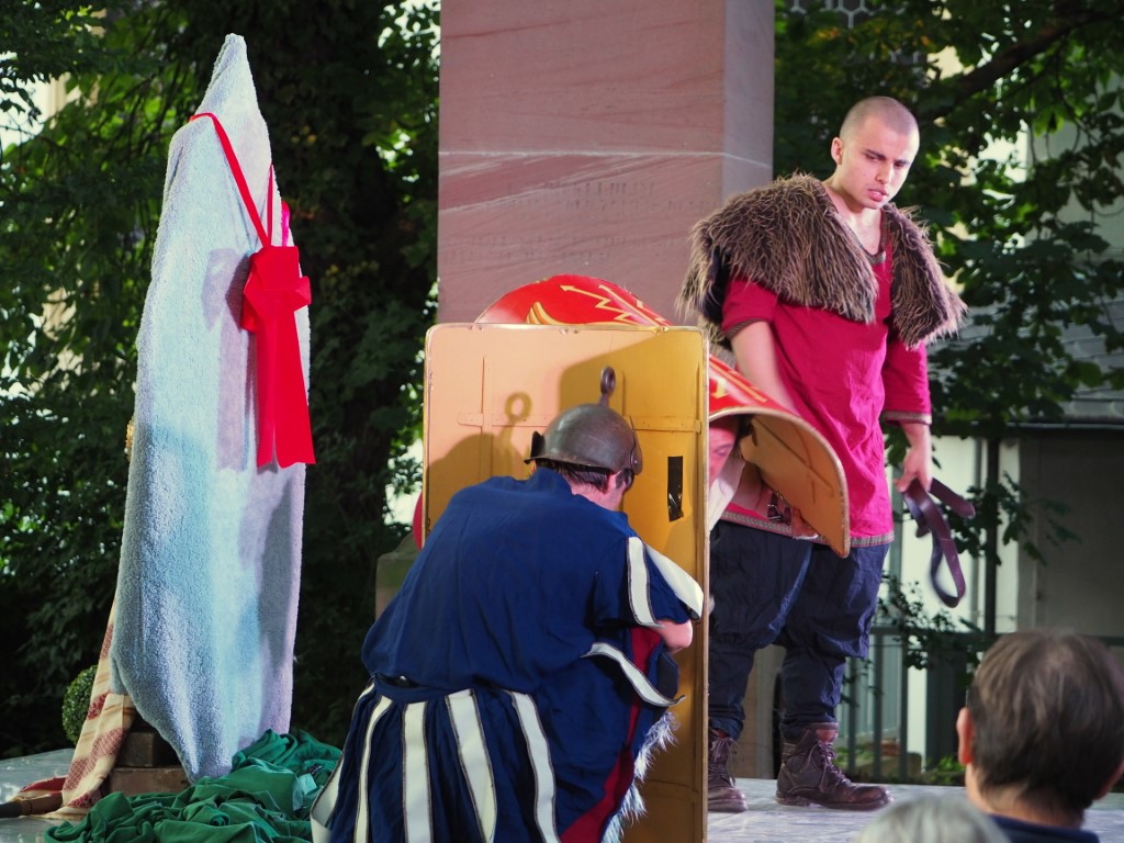 Nach dem die Jubiläumstour vom Zettel’s Theater letztes Jahr leider ausfallen musste wegen der Pandemie, konnte dieses Jahr eine Aufführung stattfinden. Zwar reduziert an Publikum, es ist ja immer noch Pandemie, aber Grandios in der Aufführung. Am gewohnten Spielort, in Wörrstadt zwischen den Kirchen, gab es eine Shakespeare Rarität, das Stück Cymbeline. Ein Komödie in der Interpretation des Zettel’s Theater, ansonsten zu lang, mit Anspielungen auf das Heute Britanniens.