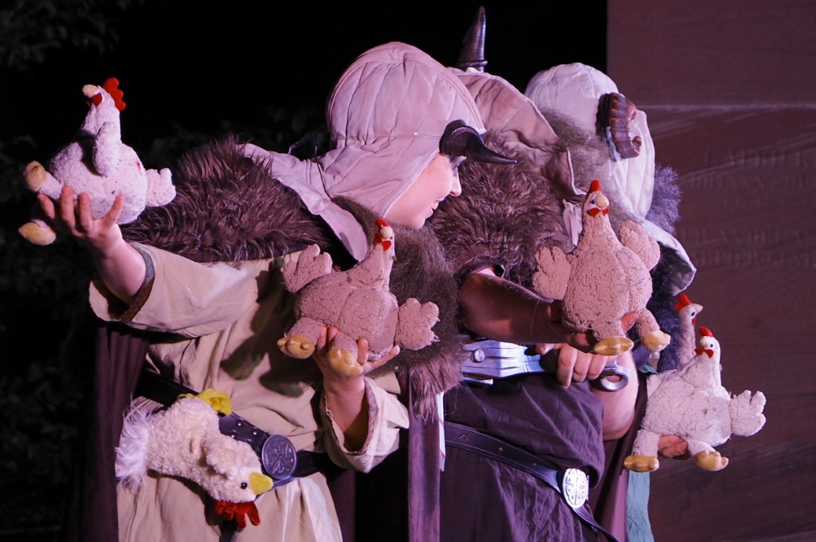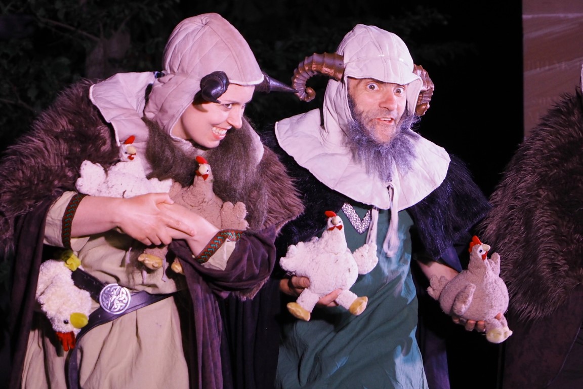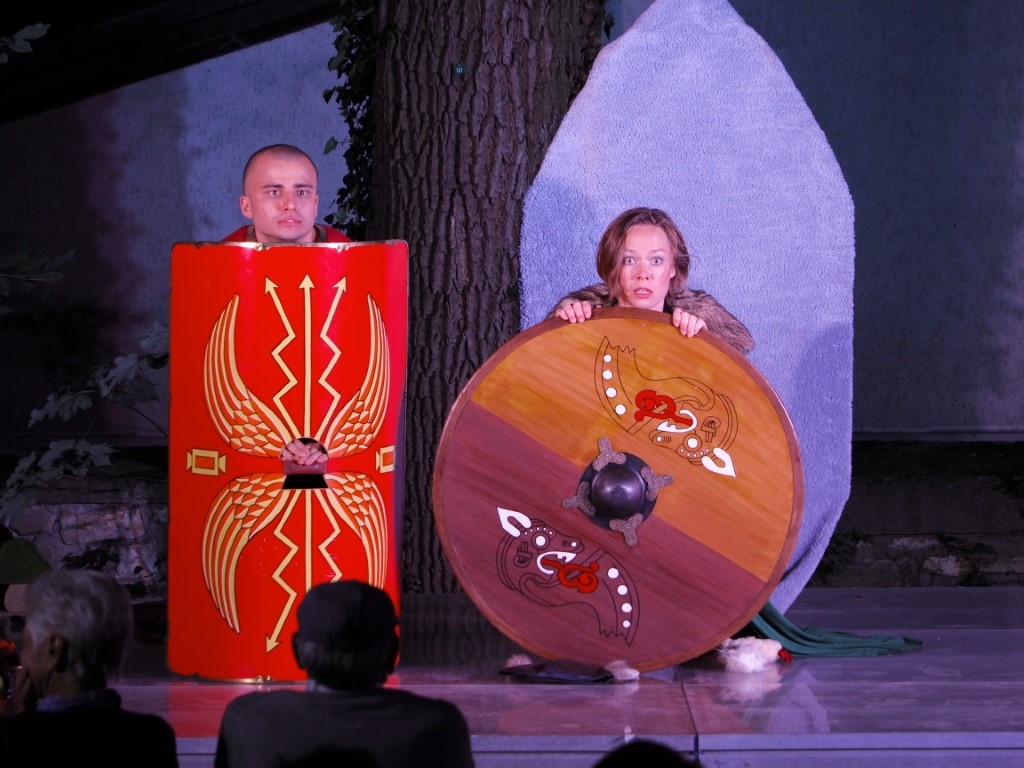 Es drohen Liebesaus und Krieg, doch dank druidischem Pilsgebräu öffnen sich ganz neue Wege für eine unglückliche Prinzessin. Diese Wege führen nicht unbedingt nach Rom, aber zwangsläufig zu walisischen Hühnerzüchtern, derweil der Hinkelstein auf der Bühne fest verankert bleibt.