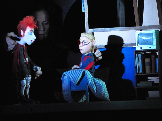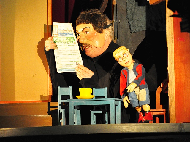 Zeitweilig sind bis zu sechs “Personen” gleichzeitig auf der Bühne. Eine Herausforderung für die zwei Puppenspieler, die ihren “Schauspielern” Hände und Stimme leihen und auch die Eltern von Anton verkörpern: mit Halbmasken verwandeln sie sich in Mit-Akteure ihrer Puppen. Das Ergebnis: einfach magisch.