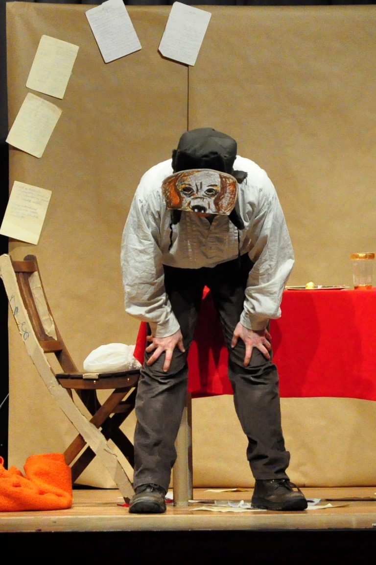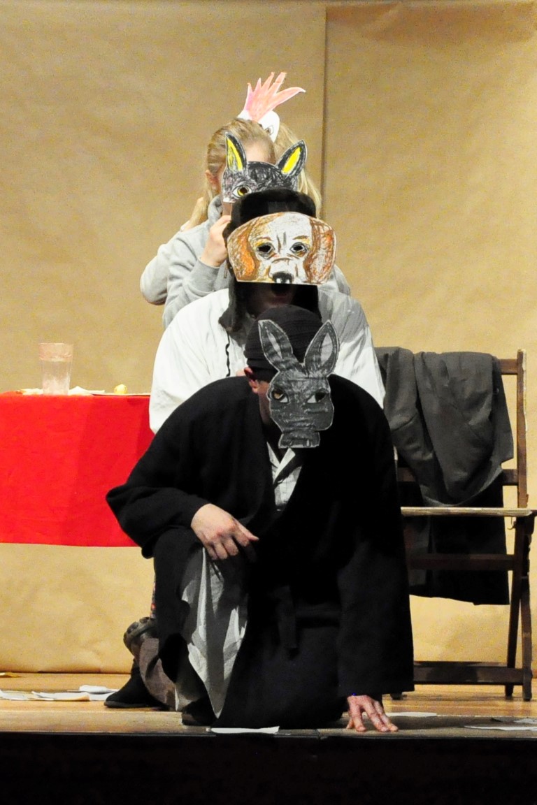 Im sparsamen Bühnenbild symbolisieren mit Packpapier bespannte Wände die Grimm’sche Küche. Einen Tisch, zwei Stühle gibt’s, zwei Weinkisten werden zum Küchenherd. Mehr braucht es nicht um die Fantasie anzuregen. „Wir wollten aus nichts die Märchen erstehen lassen“, sagt Haug nach der Vorstellung. „Mit wenig Requisiten, so wie wir als Kinder gespielt haben.“ Sicher ist es auch grade dies, was den erwachsenen Zuschauern an der Aufführung so gut gefällt: sich in die eigene Kindheit zurückversetzt zu fühlen.