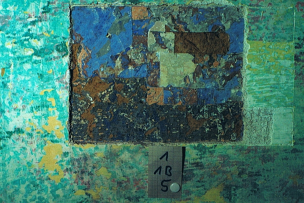 Auf der jetzigen Wandinnenfläche fanden sich auf einem Stroh-Lehmbewurf mit Häckselputz auf einer Schicht grauem Kalkanstrich im ganzen Raum Schablonierungstechniken in Ultramarinblau auf dunklem Grund. Darüber liegend konnten ca. 20 weitere Schichten festgestellt werden, zunächst etwa 10 Schichten in Blau und Waschblau im Wechsel mit Rosatönen und ergänzend Bandelierungen im oberen Wandabschluss. Darüber lagen nochmals etwa 10 Schichten einschließlich Tapeten. Die intensive Verwendung von Ultramarinblau in den untersten Schichten und die Schablonierungsarbeiten lassen auf eine Entstehung dieser Schichten um 1850 schließen (Ultramarinblau wurde erstmals industriell von Leykauf, Nürnberg, im Jahr 1837 hergestellt).