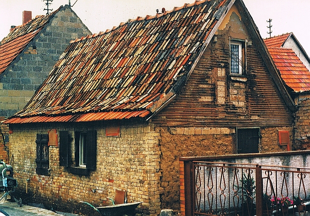 Unscheinbar und eigentlich schon vergessen war das kleine Haus gegen Ende der 80er Jahre. Unscheinbar und eigentlich schon vergessen war auch die Geschichte des Hauses in den letzten Jahrzehnten. Auch die Substanz konnte man nach Auskunft von Bauleuten “vergessen” – Lehmsteine, keine Sanitärinstallation, keine Heizung, drei Steckdosen und drei Lampen, eigentlich auch kein Dach. Das ganze Anwesen sollte daher als Bauplatz in ruhiger Innerortlage verkauft werden.In diesem Zustand, unter diesen Umständen lernte ich das Haus in der Wörrstädter Wallstraße kennen, es sollte abgerissen werden. Einer der vielen unscheinbaren Belege der “unscheinbaren Geschichte” der “unscheinbaren Leute”, die so viele waren, über die wir aber so wenig wissen. Der Zustand eines Gebäudes erschreckt einen Denkmalpfleger nicht. Im Gegenteil: Gerade das Haus, das nicht die teuren Modernisierungen der vergangenen Jahrzehnte über sich hat ergehen lassen müssen, das also noch vergleichsweise wenig veränderte Haus erlaubt die besten Einblicke in den Teil der Geschichte, der so leicht verloren geht, weil er so “einfache” Zeugnisse hinterließ – keine Datierung, keine repräsentativen Achsen, kein Stuck, keine künstlerische Leistung und auch keine städtebauliche Bedeutung. – Ein Kulturdenkmal?