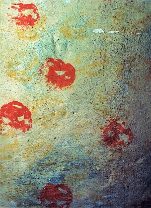Überraschende Ergebnisse konnten jedoch gewonnen werden, als die Baufuge zwischen Decke und Wänden geöffnet wurde. Ausgehend von der Decke wurden in der Tiefe der Wand mindestens 20 weitere Farbschichten nachgewiesen, die in die heutigen Wandflächen hineinlaufen. In Wand 1A gelang es sogar, den Bereich im Innern der jetzigen Wand freizulegen, in dem die Anstriche dem Radius zur früheren Wandoberfläche nach unten folgen. In einem Fall konnte der Übergangsbereich zwischen der früheren Wand- und der früheren Deckenfassung mit farbigem Abschlussstrich in mehreren Schichten schön erkennbar freigelegt werden. Die Farben dieser Schichten wechseln in gebrochenem Kalkweiß und Erdfarben.