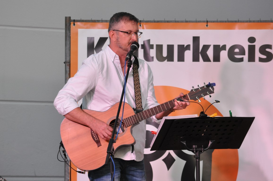 Hansi Lawall zeigte sein Können am Akkordeon und an der Bassgitarre, Elisabeth Verhoeven beeindruckte mit ihrem Cello und besonders mit ihren Rezitationen, Christian Hoch brachte mit seinen Erfahrungen aus der Folkband „Eselskreisch“ eine eigene Note ein, und Peter Holdenried riss mit seiner ausdrucksstarken Stimme das Publikum mit.