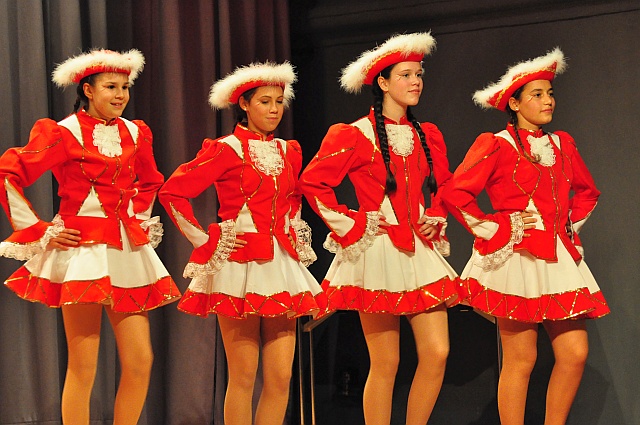 Als Delegation des TUS Wörrstadt tanzt das Gardeballett unter der Leitung von Sina Fissler, vorgestellt von Steffi Rock, die auch ein paar werbende Worte über die Angebote des TUS anbringt. Top-syncron werfen die sieben Mädels die Beine, im kommenden Jahr, „wir haben Zuwachs“, werden es dreizehn sein.