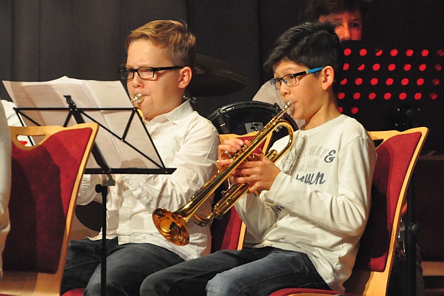Zuvor erfreuen die Junioren des Musikvereins Wörrstadt unter der Leitung von Tristan Vinzent. Als „reife Leistung“ bezeichnet Zimmermann das bläserische Können der Youngster und die bedanken sich für den Applaus mit einer schwungvollen Zugabe.